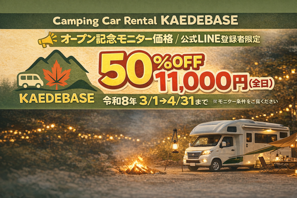 キャンピングカーレンタル「楓KAEDE」の最新情報をお届けします
